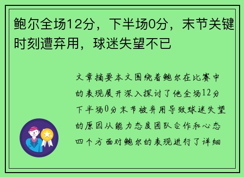 马特乌斯:诺伊尔成拜仁弱点?同巅峰期相差甚远谈球吧**摘要:**本文将从四个方面对马特乌斯:诺伊尔成为拜仁慕尼黑弱点,与其巅峰期相差甚远进行深入阐述。首先,将分析诺伊尔的失误和表现状况,其次,探讨在拜仁慕尼黑中的定位和影响力变化,再者,分析诺伊尔的球队背景和后防线的关系,最后,归纳总结对诺伊尔的评价和展望。**1、诺伊尔的失误和表现状况**诺伊尔是一名世界...